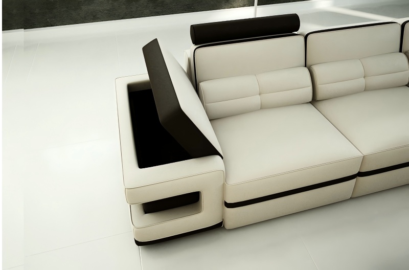 Tämä suuri L-muotoinen nahkasohva on valmistettu huippulaatuisesta tuodusta lehmän- ja pehmeästä luonnollisesta rakenteesta. Se on pariksi minimalistisen saumattoman suunnittelun kanssa, joka osoittaa hillittyjen ylellisen tekstuurin.